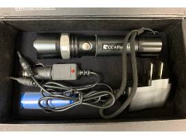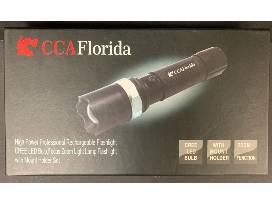 100CCA Rechargeable flashlight. Operates on 3 AAA batteries or the included rechargeable battery. Also includes 12v charger and wall charger.
