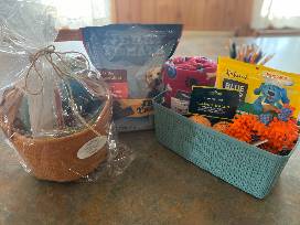 Baskets Include: $25 Gift Certificate to Pet Services, Paddock Lake Dog Treats Dog Toys Dog Jerky Treats Fleece Blanket