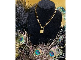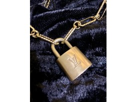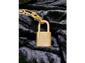 How boss is this piece?! Lock it up with a Louis necklace, featuring an up-cycled Louis Vuitton lock and chunky gold chain! Due to age in your vintage Louis Vuitton lock, your lock may have a rusted or worn finish which varies from every lock and makes every piece truly unique!