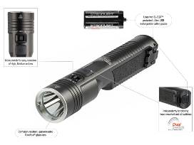 High, medium and low modes plus strobe: High for a high lumen beam: 2,000 lumens; 315m beam; runs 2 hours