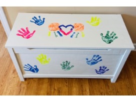 This solid wood toy box was hand built by 1st grade parent David Bryant