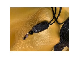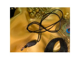 The winner of this auction item will receive an adjustable black leather necklace, anchored by volcanic rock and beading.