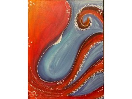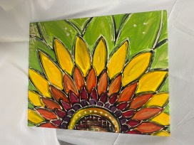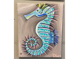 Three Whimsical painted canvases: a Seahorse, an octopus, and a sunflower all by B.Y.O.Brush