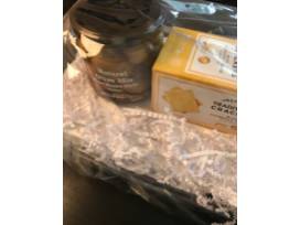 This beautiful white rectangular charcuterie board comes with specialty olives, crackers, truffle oil, and a greek season packet for bread!