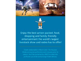 0Enjoy the best action-packed, food, shopping and family-friendly entertainment the world's largest livestock show and rodeo has to offer! Tickets redeemable in March 2022. The Houston Rodeo announces performers each January prior to season. You'll be contacted by JABOS to select the performer you'd like and arrange ticket delivery.