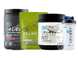 - Gnarly Nutrition Package: Tub of Collagen Pro, BCAAs, Performance Greens, and Shaker Bottle worth $137