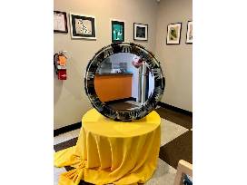 Make this beautiful mirror the centerpiece of any room. Handprints were made by Miss Lisa's classroom. Enjoy reading the positive notes around the frame written by Miss Lisa's students.