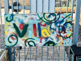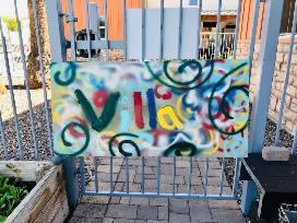 Hang this beautiful graffiti-inspired piece anywhere in your house. With its vibrant colors, it matches all rooms. Bid on this piece today, hand-made by students in Miss Suzanne's classroom.