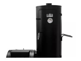 - Smoke Canyon Vertical Smoker: Offering 1,100" sq. in. of cooking space over 5 chrome-plated cooking grates through the main vertical smoking chamber, this vertical design also features 6 chrome-plated hooks at the top of the smoking chamber to hang sausages, hams, racks of ribs, and other large items. Made of a heavy-gauge, cold rolled steel with heavy-duty latches for a trustworthy seal that holds the smoke and heat inside the smoker. The 3" temperature gauge built into the smoking chamber door helps you monitor and maintain a consistent cooking heat from the smoker's offset firebox, which doubles as a charcoal grill with its 2-piece, porcelain-coated cooking grate. 45.5"x25.5"x56.25"