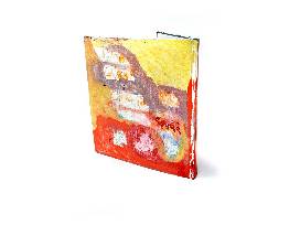 Untitled (D0651) Artist Book by Luis Estrada. Mixed media on found book. 9 x 10 x 1". Upon first encounter with Luis Estrada's work it is evident that the artist is obsessed with the weather. His paintings and drawings are peppered with meteorological symbols and diagrams. One quickly notices that entangled among the weather forecast is information about the local train systems - freight and transit - as well as images from professional wrestling.