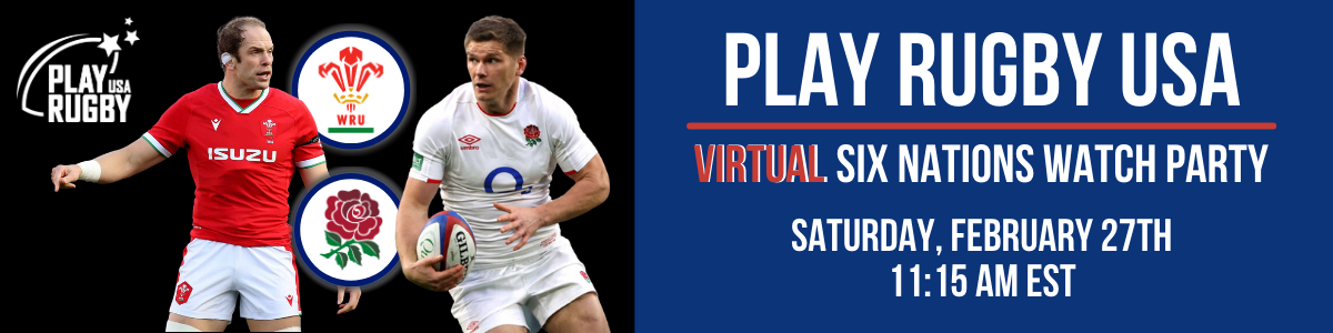 VIEW ITEMSJoin Play Rugby USA on Saturday, February 27th as we gather ~virtually~ to livestream the Six Nations 2021 Wales vs. England match. Hosted by Major League Rugby and CBS Sports' Dan Power, you and your guests will enjoy the match alongside banter and great company, exclusive Play Rugby USA content, a silent auction, a prize draw, and more from the comfort of your own homes!