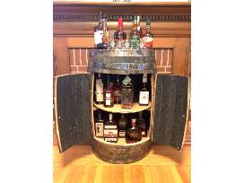 Custom bourbon barrel bar by alum Kelly Burns '85 Woodworks. Stocked with 16 bottles of Kentucky's finest bourbons and Tiger paw rocks glasses from Sterling Cut Glass. Kelly will customize the top of the barrel for the winner. Bourbons include liter of Jim Beam, Heaven Hill, Lexington Bourbon, Larceny, Angel's Envy, 2 Basil Hayden, Willett, 1792 Small Batch, Evan Williams, Maker's Mark, 2 Buffalo Trace, Woodford, Elijah Craig and Weller.