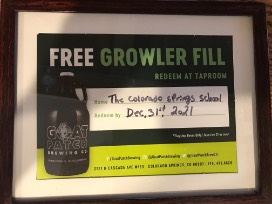 Goat Patch Brewer is proud to present a FREE growler and growler fill up to be redeemed at their taproom in Colorado Springs!