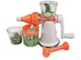 1. Panderno Manual Juicer - Enjoy making health juices without the need for electrical power. This manually operated juicer has a single auger that works to extract high-quality juice from a variety of fruits and vegetables, as well as from pomegranate seeds and wheat grass, while taking up a minimal amount of counter or storage space. Simply cut food into small pieces, press down with the pusher while turning the handle, and watch as juice flows through the filter holes at the bottom of the juicer head.