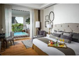 1Enjoy an amazing 5-day, 4-night stay at the (AAA Five Diamond) Grand Luxxe Vidanta, Riviera Maya. Your Grand Luxxe Master Room features either a king-size bed or two double beds, one bathroom with Jacuzzi tub, one TV, and a private terrace with a view and accommodates two adults.