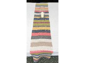 Dress up your table with this colorful, multi-striped table runner 17" wide x 9'5" long. Machine washable. From the loom of masterful weaver Janet Stanley