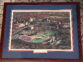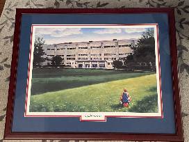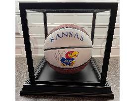 Enjoy two framed pieces by Jon Onion - "Jaydreamin'" and "Gameday on the Hill", complete with a collectible basketball signed by Bill Self in a display box and an antique 1940s Jayhawk figurine.