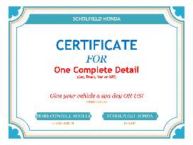Treat your car to a complete car detail and oil change from Scholfield Honda! - Expires 12/31/2021