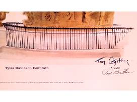 The fountain elegantly stands as the appearance of water rains down in the background. The print is Plate Two of five of The Crown Jewels Collection created exclusively for the WCET Action Auction in 2001. The 17 by 23-inch print is signed and numbered by the artist and only 200 prints were ever available.
