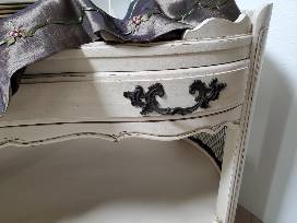 This vintage buffet server has been re-finished by Habitat Bucks' own Laura Mariazzi! This white server with black hardware is a perfect fit for a living or dining room. Plenty of drawer space to store all kinds of entertainment and kitchen items. After giving the piece a distressed look, Recolor "Winter white" paint was applied, along with an antiquing stain. This piece would also make a great vanity! Dimensions 39 1/2" L x 20" W x 31 3/4" H. This item is eligible for complimentary ReStore delivery. See Auction Terms & Conditions for restrictions. Vote for Laura now!