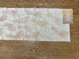 Kindergarten walking along with Jesus - Students painted their feet and made footprints on a table runner. Runner is 14.5 x 70.
