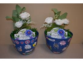 Two colorful potted planters created by fourth grade students - Each student colored two bugs/insects