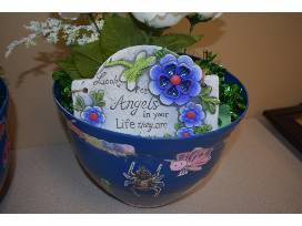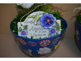 The top of one pot has the name of each student written on a flower.