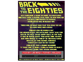 114Totally Rad Prom Party - Get "Footloose" and ready to dance "All Night Long". Tom Cruise may not be there, but you know there will be plenty of "Cocktails" and food. Whether you are a preppy, jock, rebel, or new wave kid, you must come dressed to impress. Even if it's "Just a Friend" remember "It Takes Two" to make a thing go right so grab a corsage and bring that special someone!