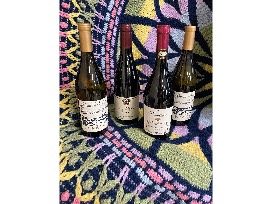 A bottle of Bourgogne Cote D'Or Pinot Noir 2020. A bottle of Cantina Di Casteggio Sangue Di Guida 2019.Two bottles of Presqu'ile Chardonnay 2019.