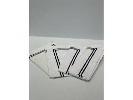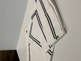 1These White Frette Pillow shams (17L X 12H) are lined in an elegant navy blue design