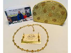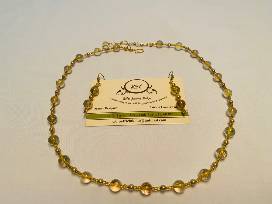 Your necklace and earring set is made of 8mm rutilated quartz with gold lined seed beads and gold plated lever backing, all packaged in an adorable gold bag.