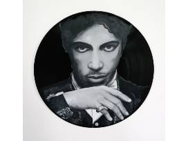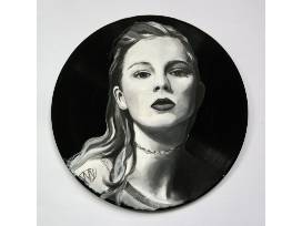 These unique designs are painted on vinyl records which can be hung and displayed. Choose 3 artists from her collection and customize the fourth