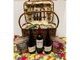 Set out for the Clarksburg wine country for a complimentary wine tasting for two at Three Wine Company. Then open up your vintage picnic hamper-filled with snacks and refreshments. Picnic hamper contains two bottles of Matchbook "Old Head" Chardonnay and one bottle of Hannah-Nicole Estate 2015 Reserve Cabernet Sauvignon, a selection of nuts from Mariani Nut Company, wine glasses, plates, and picnicking accessories, Bobby Sue's Nuts - Nuts Over Olives treats and snack and a $35 gift certificate to Farm Fresh to You.