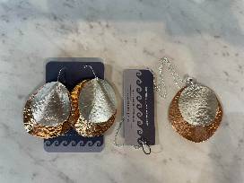 - Two Layer Pendent Earrings - Copper 2" diameter; sterling 1.5" diameter; sterling ear wires
