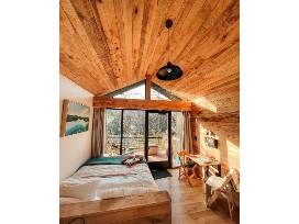 Indulge in views from bed out the floor to ceiling glass wall, spa-inspired bathroom, natural light, kitchenette, private patio, grill, access to fire pits/sauna and more.