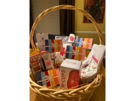This basket has something for everyone. It features $100 worth of The Corners gift cards but also assorted kitchen items and tasty treats.