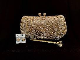 Delight in this Gold Perfect Accent to Your Beauty Swarovski Crystal Elements Purse.