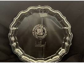 This rare and unique item is one you cannot get your hands on unless you know our 45th President, Donald Trump. Get your hands on this one-of-kind item, a very RARE, President Donald J. Trump 12 inch Round Pewter Chippendale Mirror Finish Tray featuring the Presidential Seal and the engraved signature of the President. From the artisans at Salisbury pewter. Handmade in The USA. You won't want to miss out on this item! The Salisbury Platter comes with a platter box too.