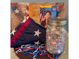 The Patriotic Basket includes a flag flown over the US Capitol, copy of the Constitution and goodies from local patriotic businesses, provided by Congressman Young Kim.