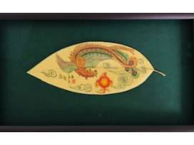 This contemporary Chinese painting on a preserved leaf was purchased in Beijing, China and framed by Tom Hogeback of Village West Framing. Size is 7.5"h x 13.5"w.