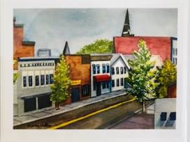 These 4.5" x 5.5" notecards are prints of original watercolors by local artist, Marcia Waller. Each packet of cards has its own theme: