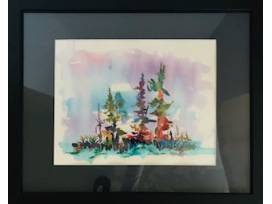 Brighten a room with this watercolor of three trees painted and signed by local artist Pat Kaufman.