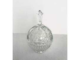 1Early 20th century American cut glass covered dish measures 6" in diameter. With pressed glass cover, it is 9.75" tall.