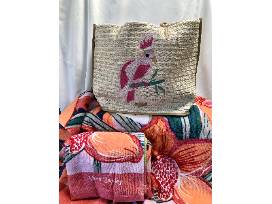 Get ready for a lakeside summer with the perfect package from Vera Bradley! This package includes one (1) Straw Tote Bag in Light Natural Straw and two (2) Beach Towels in Rain Forest Canopy Coral.