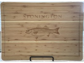 "Stonington Striper" is a beautiful 14" x 20" bamboo cutting board engraved by local Stonington artist, Kate Careb. The perfect size for serving a beautiful charcuterie or for displaying in your kitchen. Durable enough for cutting food, but it's so lovely that you may not want to!