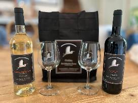 6 Bottles of Saltwater Farm Vineyard wine (3-Runway White 2020 & 3-Runway Red) and 6 signature glasses
