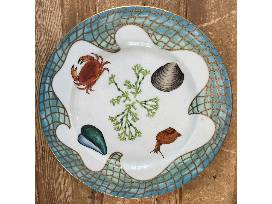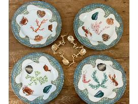 Set of 4 dinner plates (11") from Lynn Chase Designs - Saint Tropez with 24K gold details. These plates were used in a blue ribbon winning tablescape at the Newport Flower Show.