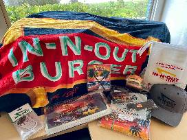 This basket has all the In-N-Out Burger merchandise you could wish for! This burger joint if world famous for their part of West Coast culture.