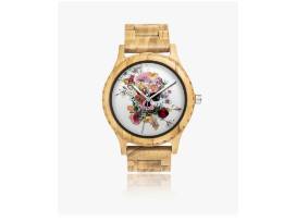 A perfect pair to add to any wardrobe. The tan genuine leather cowhide wristlet will be perfect to carry all of your belongings. The floral, skull Italian Olive lumber wooden watch will be the perfect touch of glam to your wrist. These two will loved by anyone!!