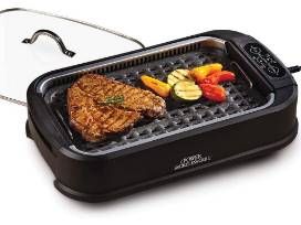 Take your grilling to the next level with this electric, smokeless indoor grill. It even comes with a lid to keep the mess to a minimum! It also comes with a separate, attachable griddle plate.